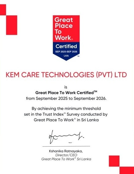 Kemcare Technologies (Pvt) Ltd is proud to be certified as a Great Place to Work™ in Sri Lanka with effect from September 2025.